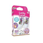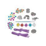 Contiene: 6 amuletos en blanco para pintar, 15 cuentas estrella, 15 cuentas pony, 10 cuentas rayadas, 1 par de cordones lilas, 5 pinturas, pincel y guía.