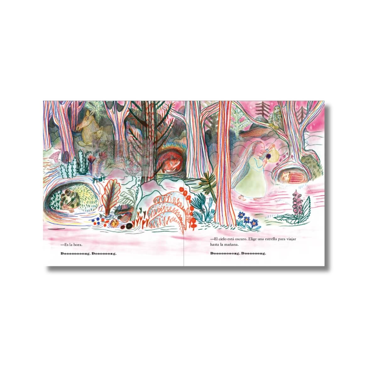 Es la hora de dormir, pero ¿qué hacer cuando el sueño no llega? Los cuentos de Mamá Osa narran sencillas historias que suceden durante la noche, y que, entre susurros, ayudan a los más pequeños a alargar ese instante mágico que antecede al sueño. El bosque se prepara para dormir: los peces, las hormigas, el armiño… La guardiana de la noche les recuerda con su gong que «ya es la hora»: mañana les espera un mundo de sorpresas. Sin embargo, no todos consiguen conciliar el sueño. A veces, la noche cae de pronto, justo cuando la aventura no ha hecho más que comenzar. Otras, simplemente, los ojos permanecen abiertos como los de una lechuza. ¿Qué hacer para cruzar la noche hasta la mañana?