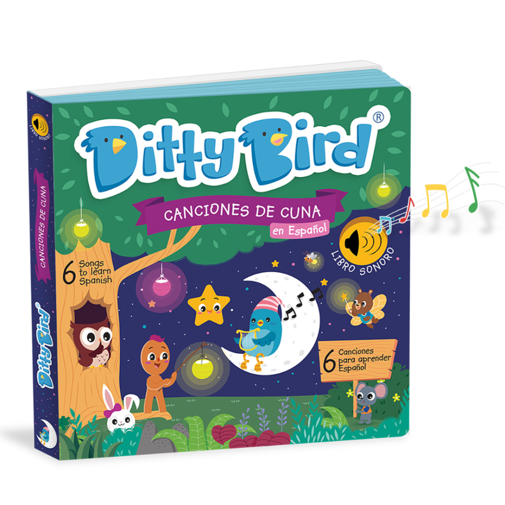 ¡Di buenas noches con el libro sonoro Canciones de Cuna en castellano de Ditty Bird! Con 6 canciones de cuna clásicas como «Estrellita, ¿dónde estás?» y «Arrorró mi Niño», este libro ofrece una manera suave y melódica de calmar a sus pequeños para que duerman mientras les presenta la belleza de las melodías.