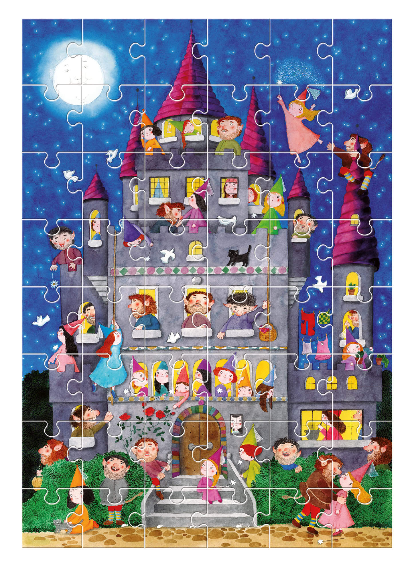 ¡ En un hermoso castillo encantado , lindos ogros y hadas voladoras viven juntos! Reconstruye el rompecabezas gigante y descubre su magia . Las imágenes cuidadosamente ilustradas y el cartón grueso hacen que el juego sea único y precioso.