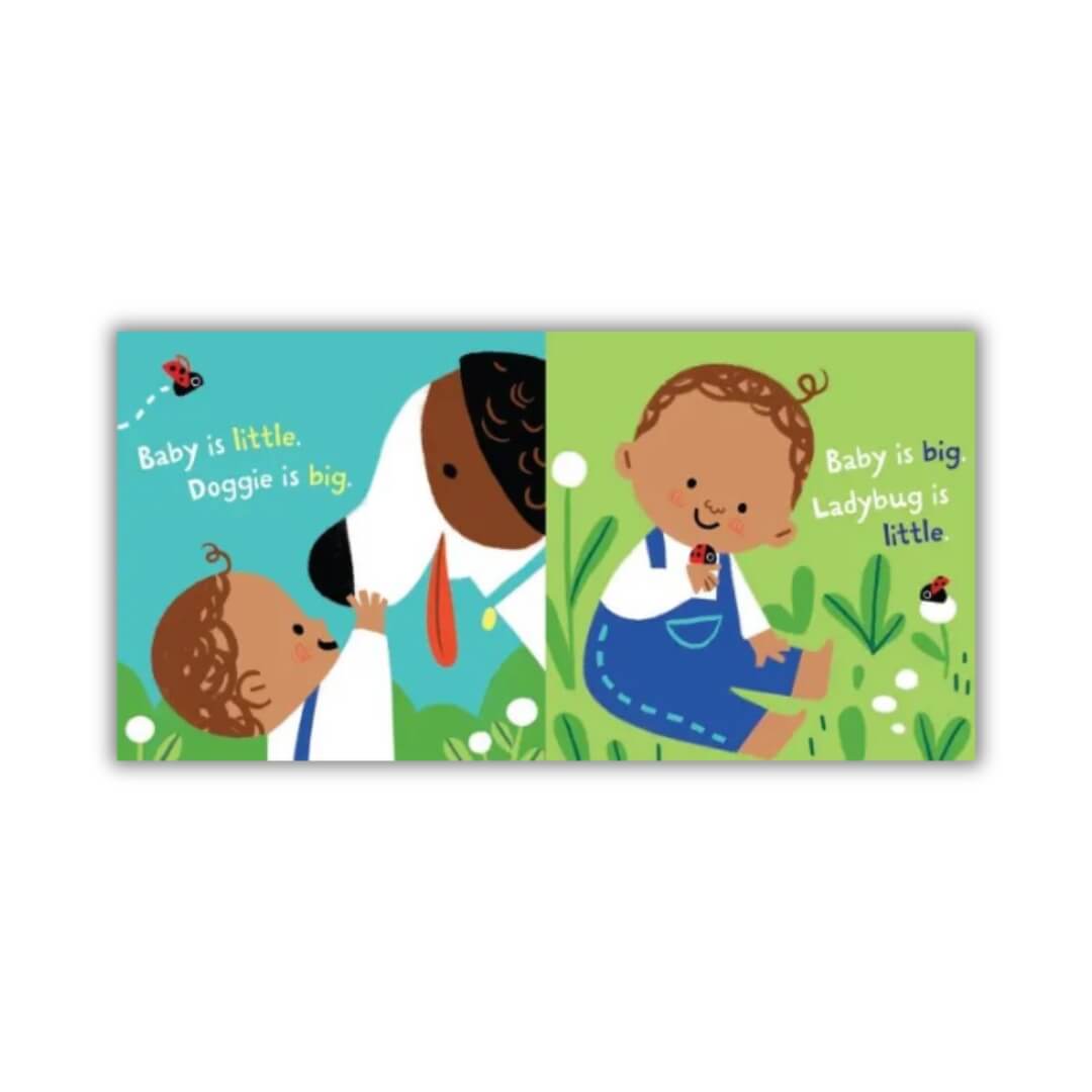 Aprende todo sobre los opuestos en un libro que es indestructible. ¿Ves al perrito? ¡Tan grande!