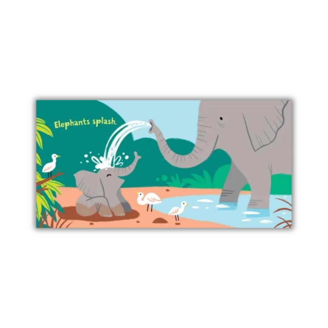 Pequeño elefante, limpiémonos. ¡Chapoteo!