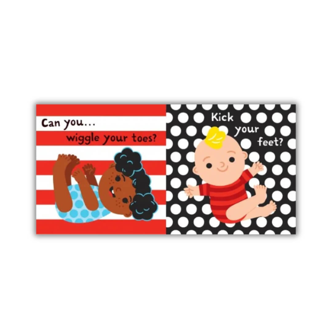 Mueve los dedos de los pies, patea y tócate la nariz en este dulce libro que es indestructible. Enseñe a los pequeños lectores sobre sus cuerpos en este libro colorido y de alto contraste con patrones en blanco y negro y colores llamativos que ayudan al bebé a concentrarse en sus primeras etapas.