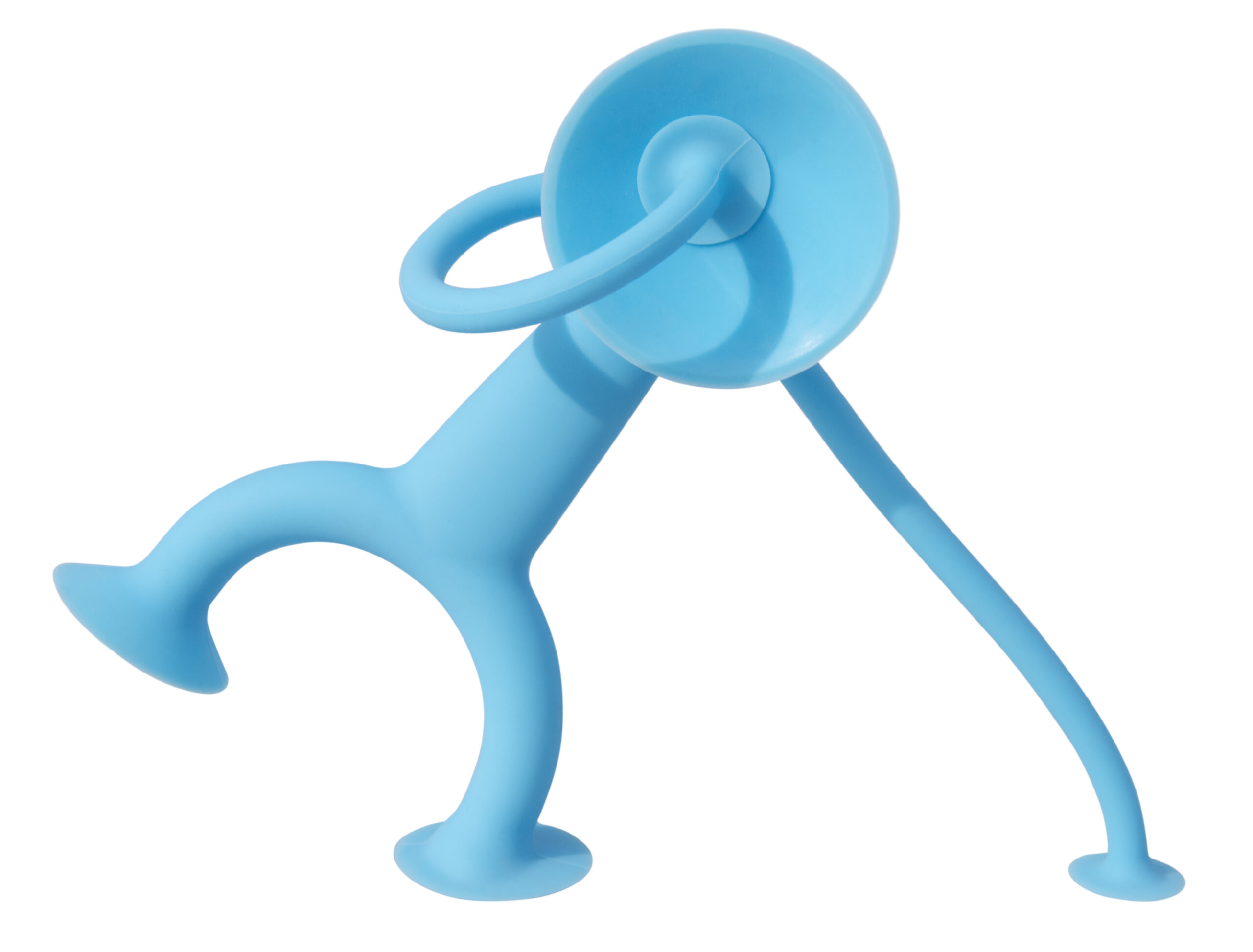 Juguete original de diseño suizo. Con brazos, piernas y cabeza súper estirables y con chupones para adherirse a superficies lisas como vidrios, espejos, mayólica, etc. Material: Silicona. Libre de bisfenol A, ftalatos y látex.. Edad recomendada: 3 años a más. Medida referencial del producto: 13cm de altura
