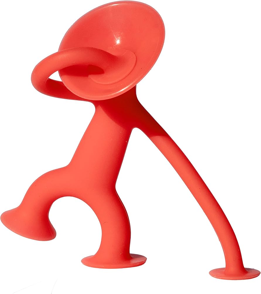 Juguete original de diseño suizo. Con brazos, piernas y cabeza súper estirables y con chupones para adherirse a superficies lisas como vidrios, espejos, mayólica, etc. Material: Silicona. Libre de bisfenol A, ftalatos y látex.. Edad recomendada: 3 años a más. Medida referencial del producto: 8cm de altura