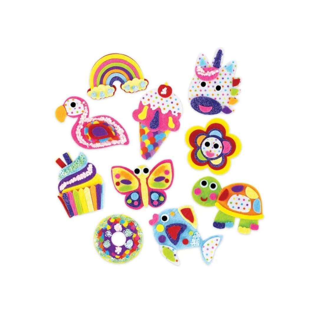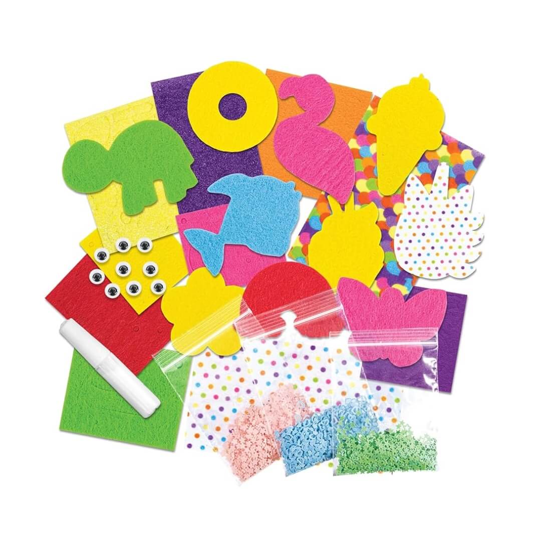 ¡Transforma el fieltro en arte! Este kit permite crear parches decorativos únicos. Con piezas adhesivas y lentejuelas, los niños desarrollan motricidad mientras se divierten.