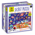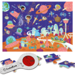 Encaja las 24 piezas y explora el espacio con todos sus planetas, ¡después descubre los secretos y los misterios del mundo alienígena con las lupa espía!