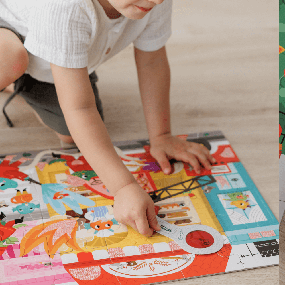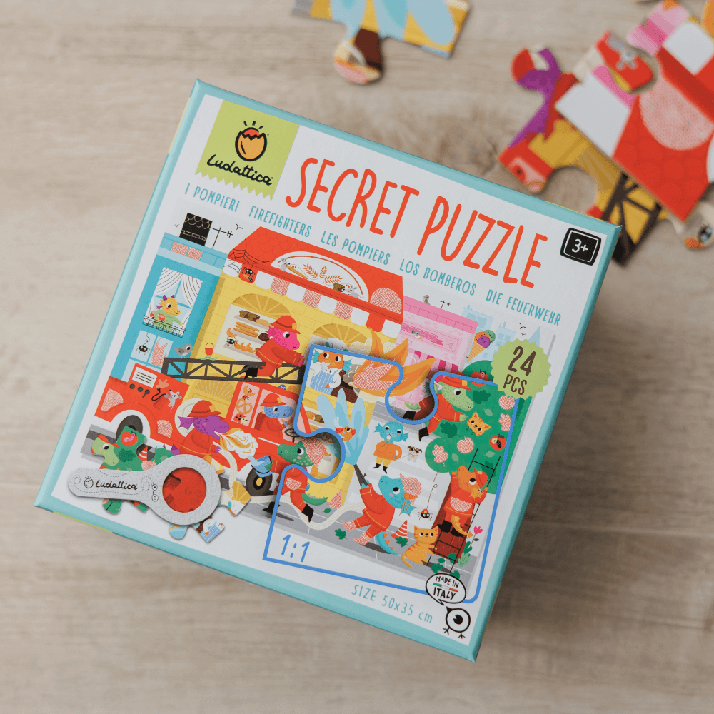 Encaja las 24 piezas, una vez montado, el niño usará la especial lupa espía para descubrir todos los secretos escondidos en la imagen.